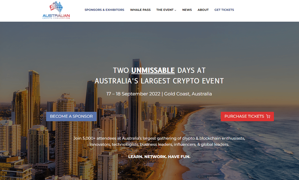 The Australian Crypto Convention will see over 5000+ crypto and blockchain enthusiasts and experts gather, making it the largest Australian crypto event.